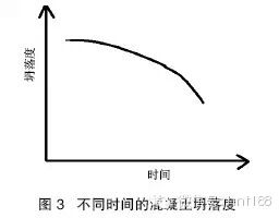 混凝土產品的時效性比較短,這與混凝土的濕化學反應緊密相連。圖 3 是混凝土坍落度與時間的關系。從圖中可以看出,隨著時間的推移,混凝土的流動性在逐步損失,混凝土時效性的控制就是在規(guī)定的時間內,將其澆筑施工應用,一般情況下 1 個小時內必須澆筑,澆筑完成時間夏季最長不應超過 3 小時,冬季最長不應超過 5 小時,這樣才能較好的保證混凝土生產質量,一旦超過時效必須進行混凝土的報廢處理。