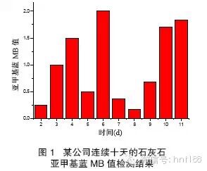 水泥生產之所以能夠生產出均質穩(wěn)定的產品,在于水泥生產有良好的均化鏈,從礦山各品位礦石的搭配到原材料的預均化,生料的粉磨,生料均化庫的均化,均衡穩(wěn)定一直貫穿新型干法水泥生產的始終。對比混凝土生產,進廠原材料多為汽車運輸,堆放進攪拌站后不經過任何措施就開始使用,而且部分企業(yè)為了降低原材料資金占用甚至會保持很低的庫存,或者在生產旺季得不到足夠數(shù)量的原材料,造成砂石等原材料未經檢驗直接使用,嚴重違反了水泥企業(yè)通常要求的 “ 先檢驗后使用 ” 的基本原則。對于混凝土所使用的天然砂石等物料,由于本身物料粒度較大,資源礦山品質多變,制造設備簡陋,砂石等物料的礦物組成經常發(fā)生變化。同時石子經過簡單破碎,其中大部分有害雜質無法剔除,粘土等有害物質頻繁波動,圖 1 就是某公司石灰石粉亞甲基藍 MB 值檢測結果的波動情況。實際上,多數(shù)商品混凝土企業(yè)并沒有自備礦山,上游砂石質量和數(shù)量無法控制和調整,而即使有礦山的攪拌站也很難做到大規(guī)模儲備性搭配開采。對于固體物料,粒度越大,離析越大,越難以均化。對于天然砂石材料有均化設施的水泥企業(yè)尚且存在一定的波動,而使用未經均化的原料的商品混凝土企業(yè)的質量波動就更加劇烈了。